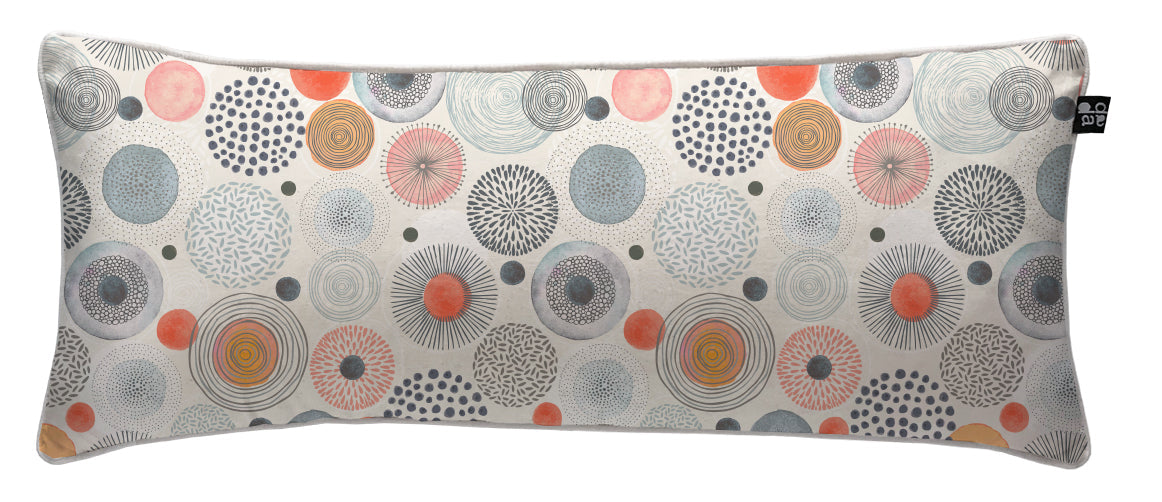 5. Cojín 120 x 35 cm: Diseño por ambos lados, con cordón perimetral, cierre invisible, relleno algodón sintético removible.
